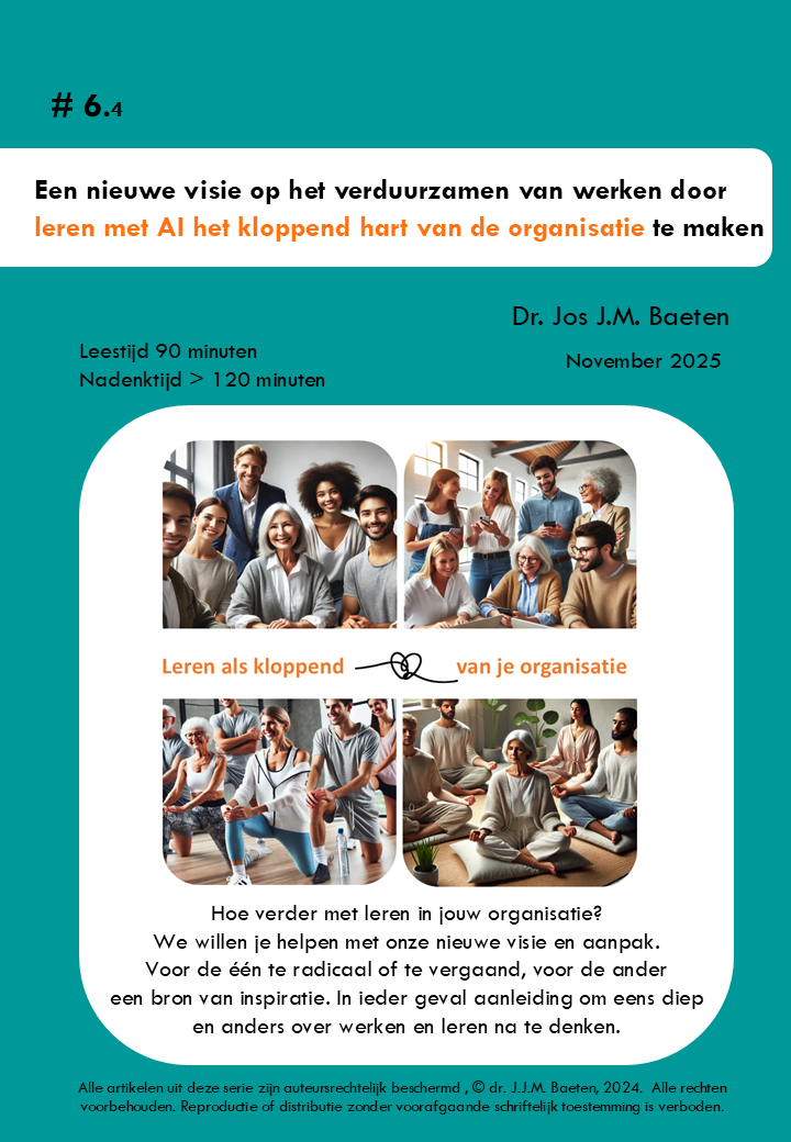 In een serie artikelen vertaalt dr. Jos J.M. Baeten, zijn ervaringen, inzichten en onderzoeken naar werkplekleren en AI, naar een nieuwe visie, perspectief en uitvoering van leren in organisaties: