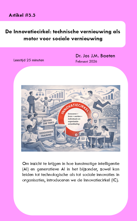 Technologische innovatie krijgt pas echte betekenis wanneer zij leidt tot sociale vernieuwing. In dit artikel introduceert Dr. Jos J.M. Baeten de Innovatiecirkel: een denkkader dat laat zien hoe leren, werken en innoveren onlosmakelijk met elkaar verbonden zijn.