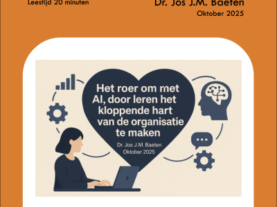 Het roer om met AI van dr. Jos J.M. Baeten laat zien dat de duurzame integratie van kunstmatige intelligentie in organisaties niet begint bij technologie, maar bij het leervermogen van professionals en teams. De paper pleit voor een fundamentele verschuiving: weg van het optimaliseren van bestaande processen via trainingen en tools, naar een lerende benadering waarin AI fungeert als co-intelligentie, een partner die het collectieve leervermogen versterkt.