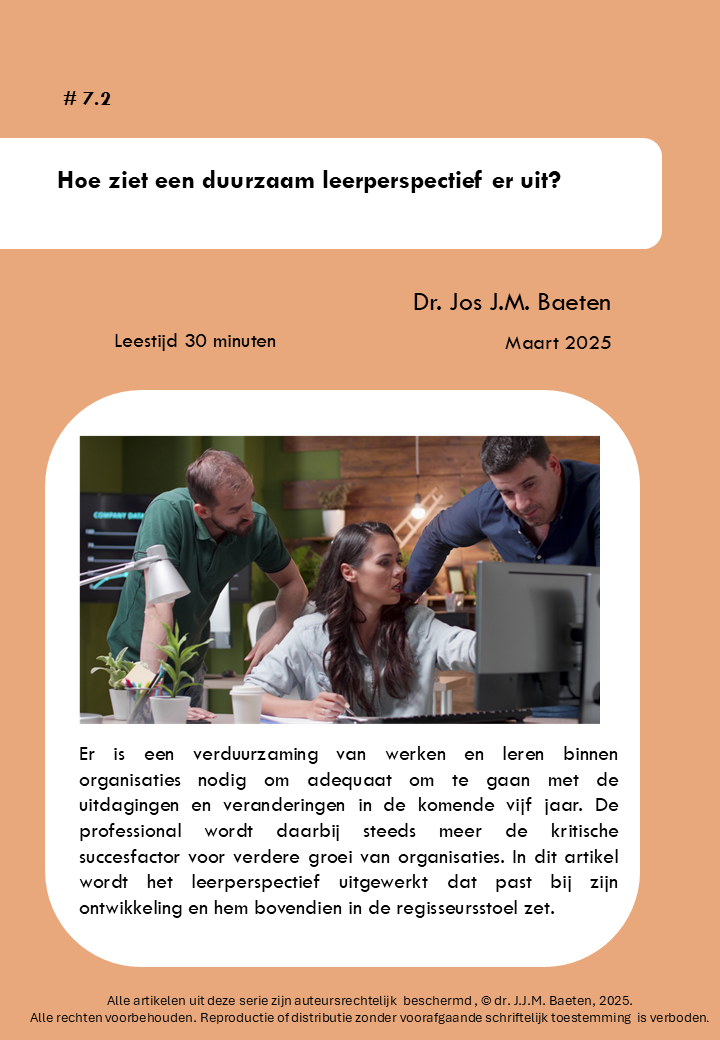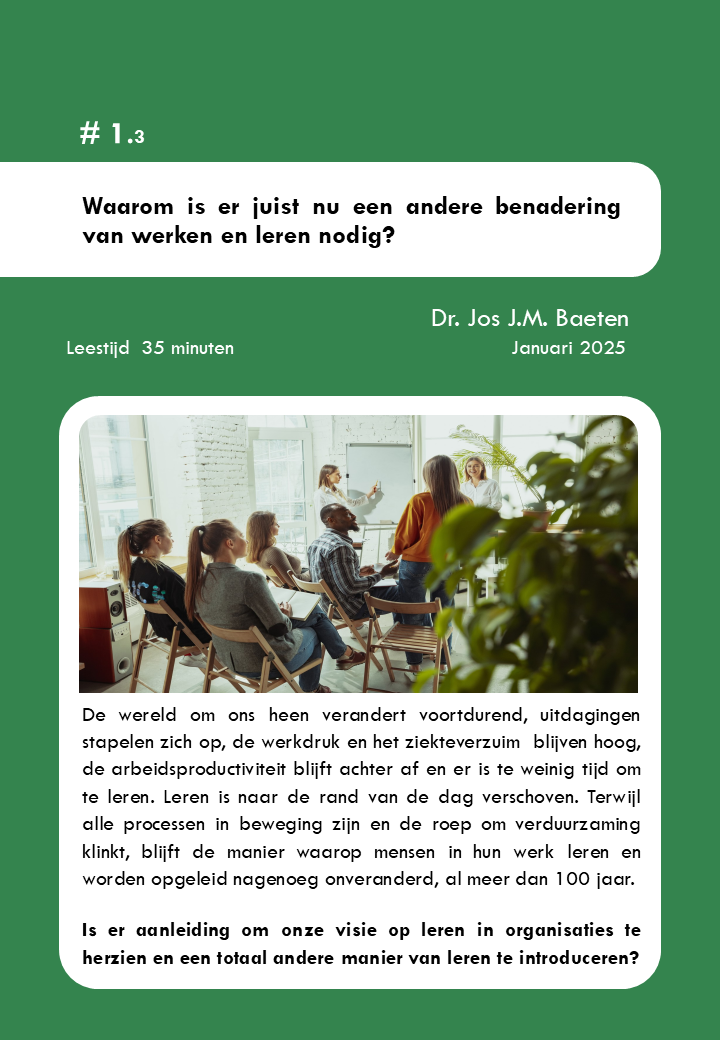 In een serie artikelen vertaalt dr. Jos J.M. Baeten, zijn ervaringen, inzichten en onderzoeken naar werkplekleren en AI, naar een nieuwe visie, perspectief en uitvoering van leren in organisaties: