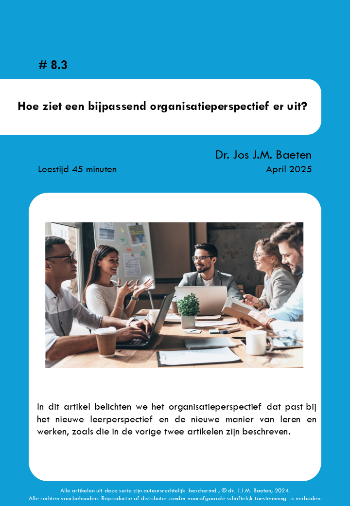 Dit artikel beschrijft het organisatieperspectief dat past bij de nieuwe visie en manier van leren zoals in artikel 6 is beschreven.